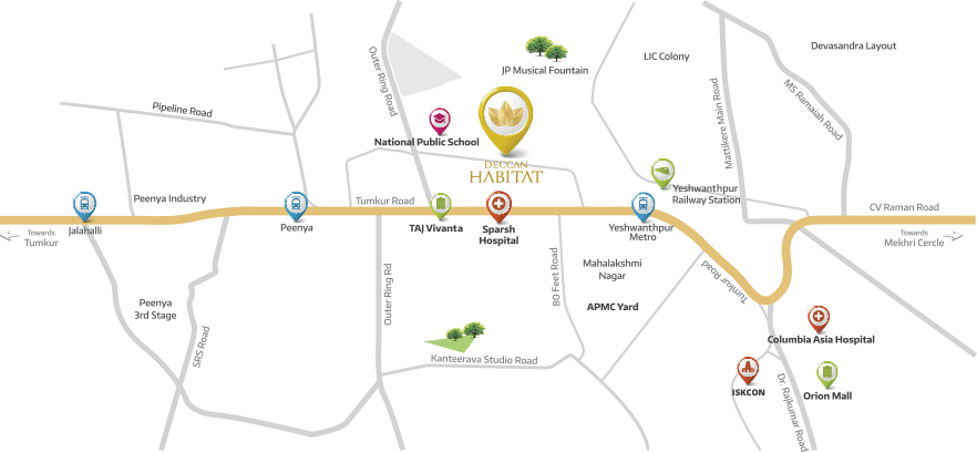 Life unfolds it’s magic in more ways than one. Deccan Habitat has strategically located itself at a prime site. Hospitals, metros, offices, entertainment centers are only at a stone’s throw.