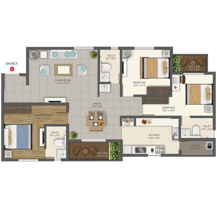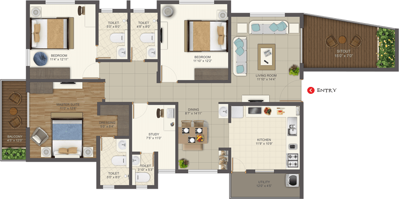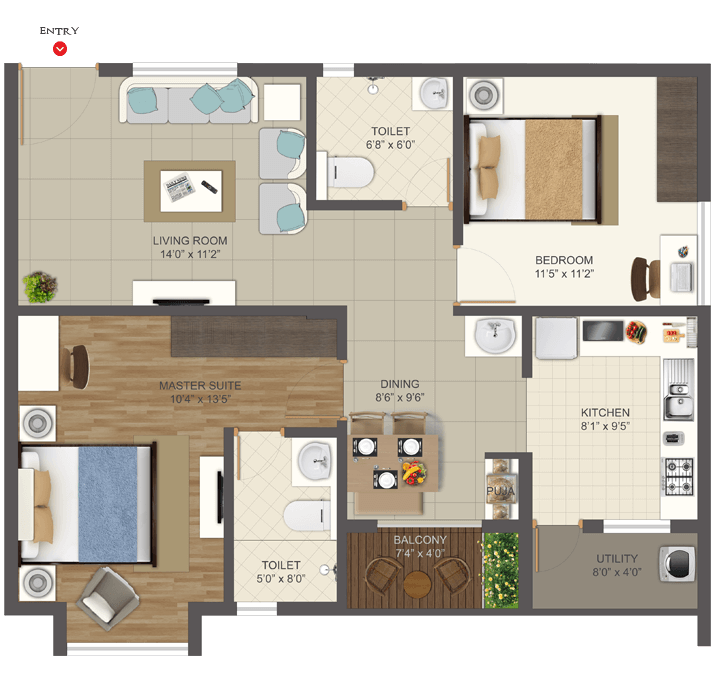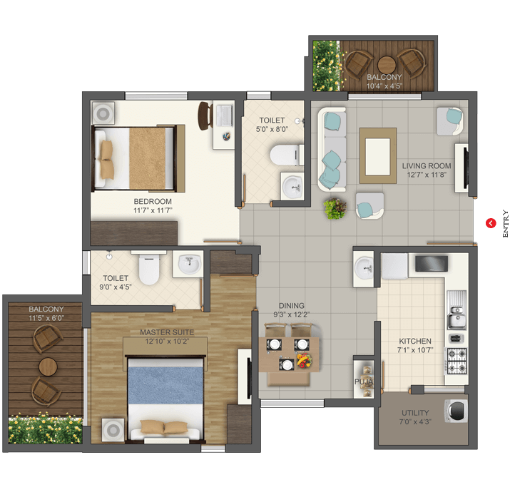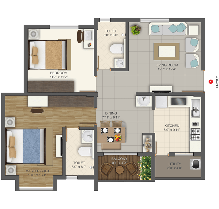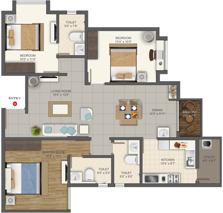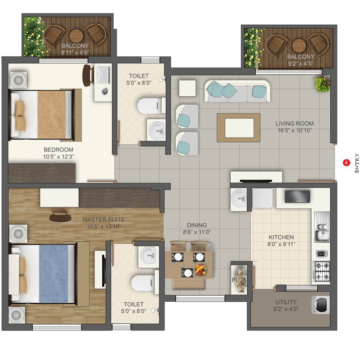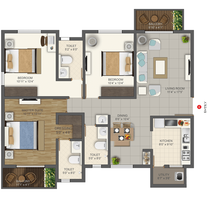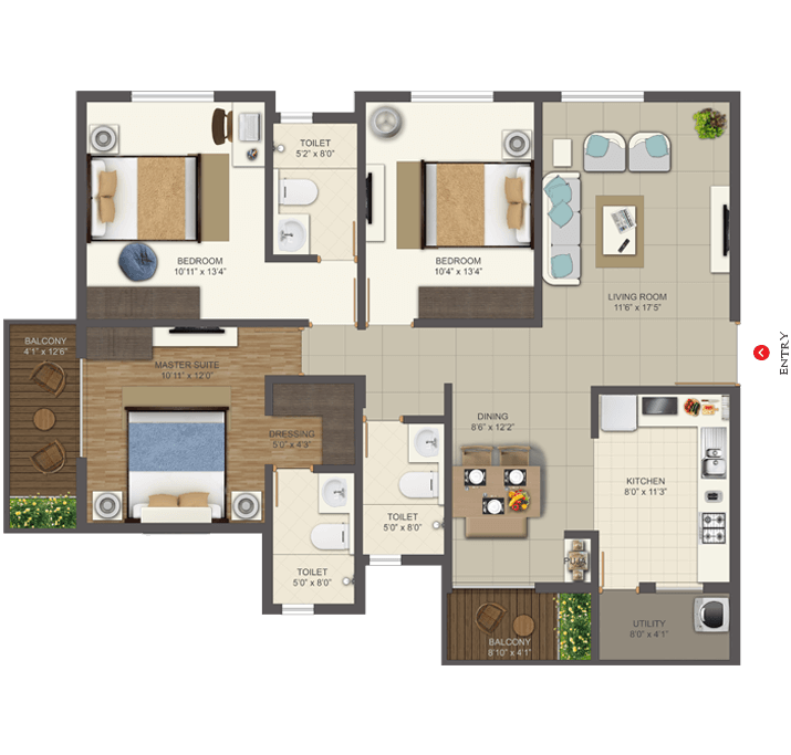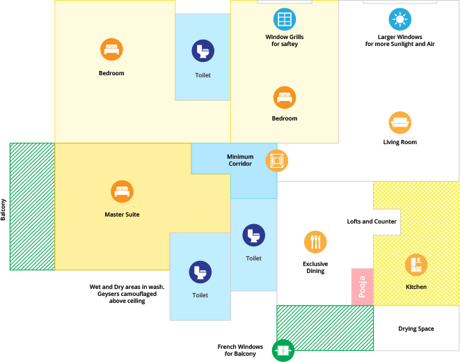 Deccan projects are Vastu compliant to boost the positive energy in your home. The Kitchen should be in South-East corner as this is the fire angle which is ideal for cooking.