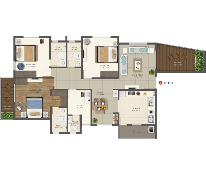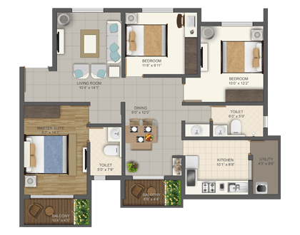 unit type - 3 bhkSpaces that defines your Personality