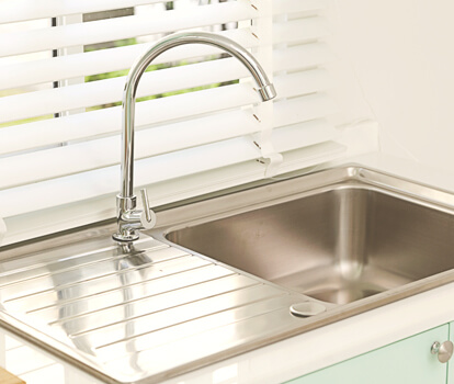 • Stainless steel sink of Nirali make or equivalent with Two taps for Borewell and Corporation water. Provision for chimney and hob.