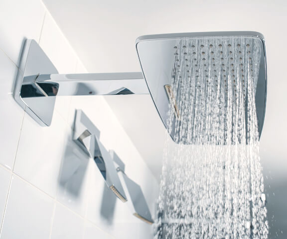 • Glass partition for shower area and Counter top Wash basin with Pillar Cock.